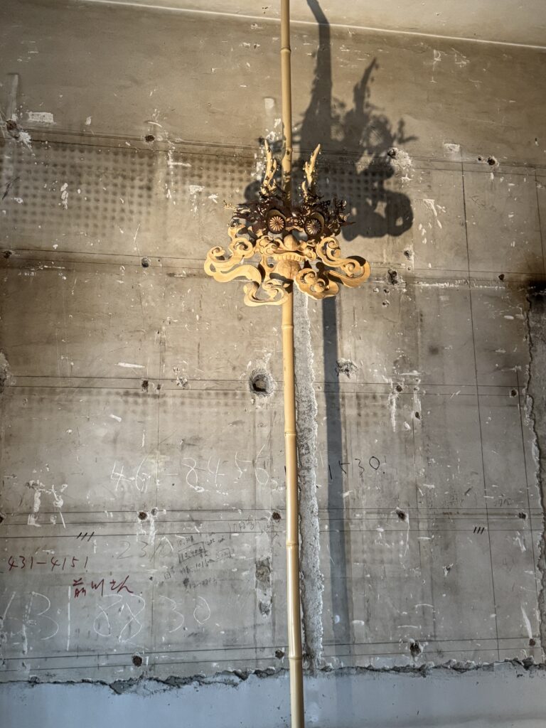 工房内では、修復中の釈迦三尊像の作業を進めつつ、鋳物製の誕生仏の欅(けやき)製蓮台の制作、香炉台の透かし彫りの調整など、複数の作業を同時に進行していました。どの仕事も繊細で集中力を必要としますが、木と向き合う時間はやはり心の軸になります。